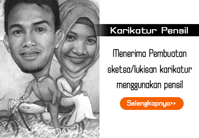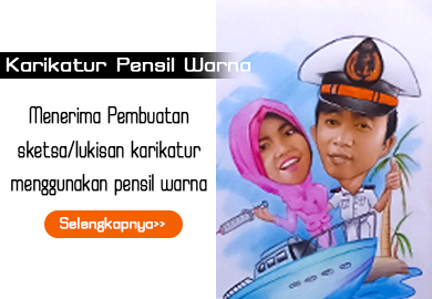 Jasa lukis karikatur dengan pensil warna ukuran A4/10R 20x30cm